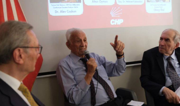 Kabasakal’ın ardından söz alan Altan Öymen, 1946 Türkiye Genel Seçimleri zamanında yaşananlardan bahsetti. Öymen, o yılları “Türkiye’nin anayasayla kavuşması 1876 zamanlarından. O anayasa daha sonra başka anayasal ortaya çıkana kadar Türkiye’nin anayasası gibi görüldü. 1946’da Türkiye’de demokratikleşme yolunda hızlı adımlar atıldı. Demokrasi yolunda mesafeler alındı, devrimler oldu. 1924 anayasasıyla kadınlar eksik olan hakları onlara verildi. Yeni partiler kuruldu. 2 tane de sosyalist parti kuruldu” ifadeleriyle anlattı.