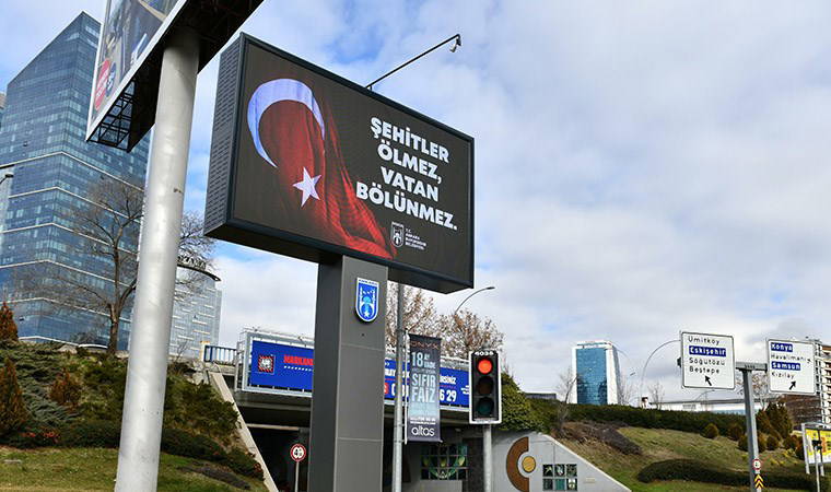 Irak'ın kuzeyinden gelen şehit haberlerinin ardından Ankara Büyükşehir Belediyesi (ABB), Ankara'daki LED ekranlara "Şehitler ölmez, vatan bölünmez" yazısı yansıtarak şehitleri andı.