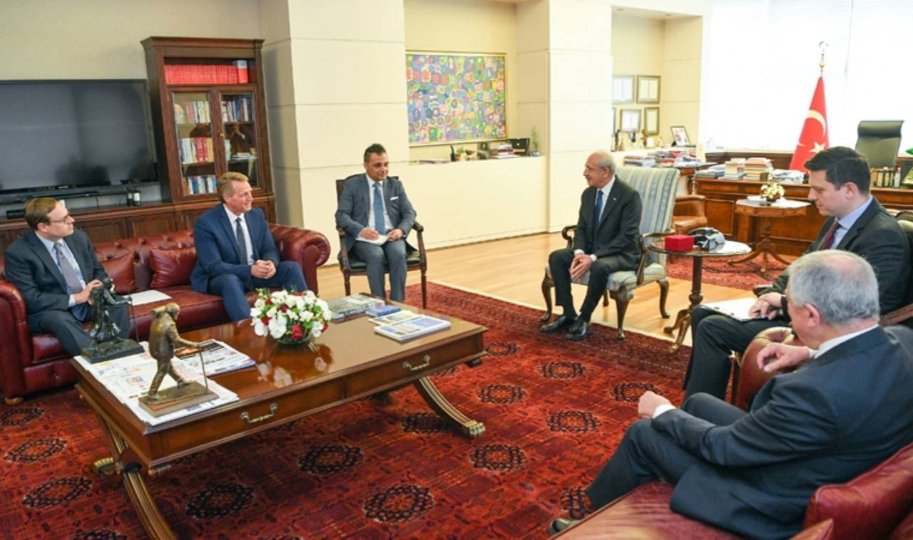 CHP'den yapılan açıklamaya göre, Kılıçdaroğlu, ABD'nin Ankara Büyükelçisi Jeffry Flake ile CHP Genel Merkezi'ndeki makamında görüştü.