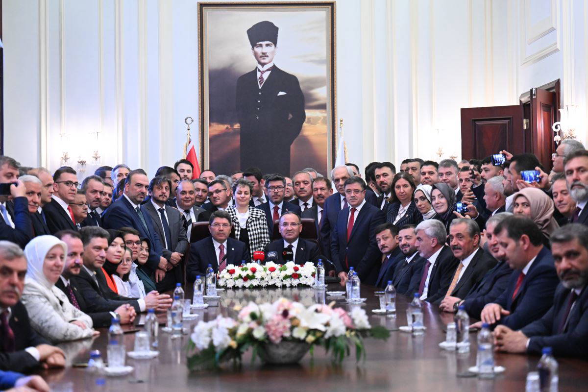 Bakan Yılmaz Tunç ise "Seçim süreci boyunca bizleri destekleyen aziz milletimize çok teşekkür ediyorum. 21 yıldan bu yana yönetim ve siyaset anlayışımızın temelinde hep adalet vardı, adaletin temelinde de insan vardı. Hukuk devletinin tahkimi yolunda önemli reformalara imza attık. Sessiz devrim denilebilecek işlere imza attık. Çok önemli mevzuat değişikliklerini milletimiz için hayata geçirdik. Önemli Anayasa değişikliklerini hayata geçirmiştik. Şimdi sivil Anayasa için uzlaşmanın sağlanması en büyük temennimiz olacaktır" ifadelerini kullandı.