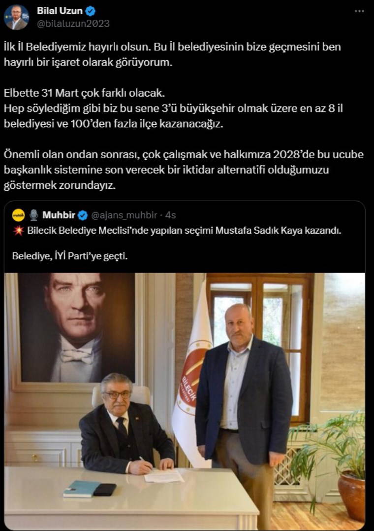 İYİ Parti GİK Y. Üyesi ve İstanbul 2. Bölge Milletvekili adayı Bilal Uzun, X hesabından yaptığı paylaşımda 'ucube başkanlık sistemi' ifadelerini kullandı.