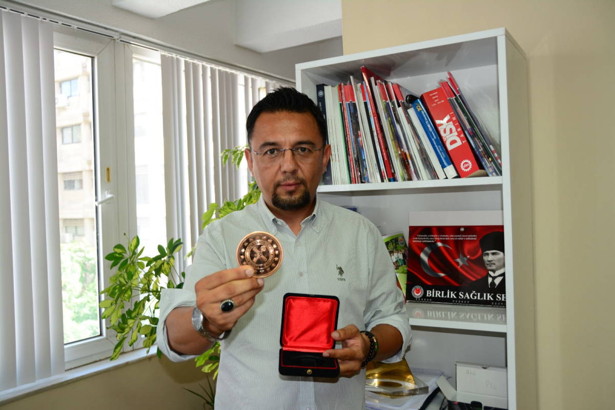 (Hakan Tekin’e verilen özel basım olan “Fedakar katkı ve özveriniz için teşekkür ederim” yazılı bronz şilt)