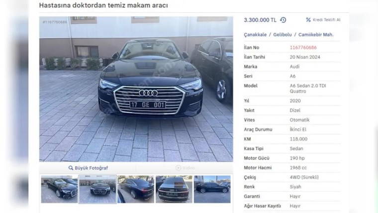 Koltuğu CHP'li Mustafa Özacar'dan devralan Soyuak'ın ikinci el satış sitesinde "Hastasına doktordan temiz makam aracı" başlığıyla koyduğu araçla ilgili yorumları da dikkat çekti.