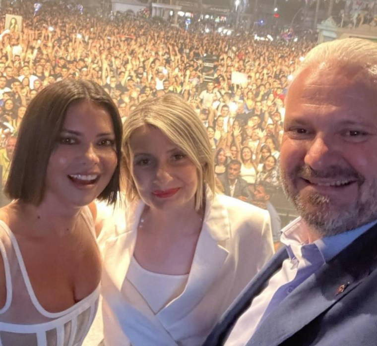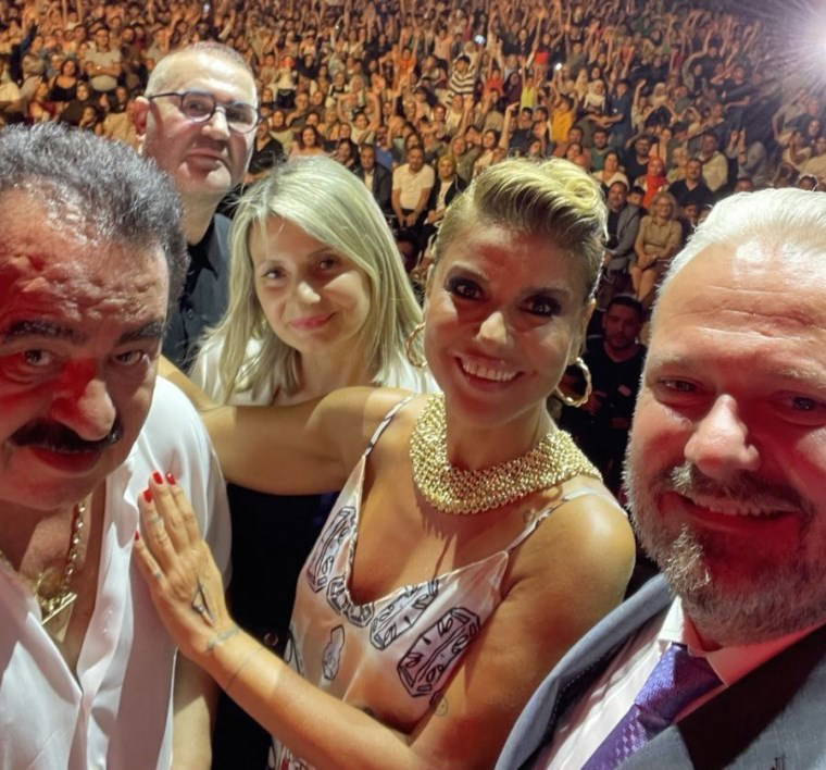 AKP'li Başkan Aydın Pehlivan ve eşi şarkıcı İbrahim Tatlıses, Gülben Ergen ve Şafak Sezer ile birlikte sahnede selfie yaptı