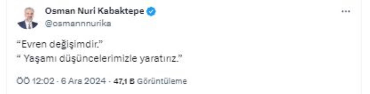 AKP İstanbul İl Başkanı Osman Nuri Kabaktepe'nin sosyal medya platformu X'teki (Twitter) hesabı üzerinden yaptığı paylaşım kimi dinci çevrelerde tepkiye yol açtı.