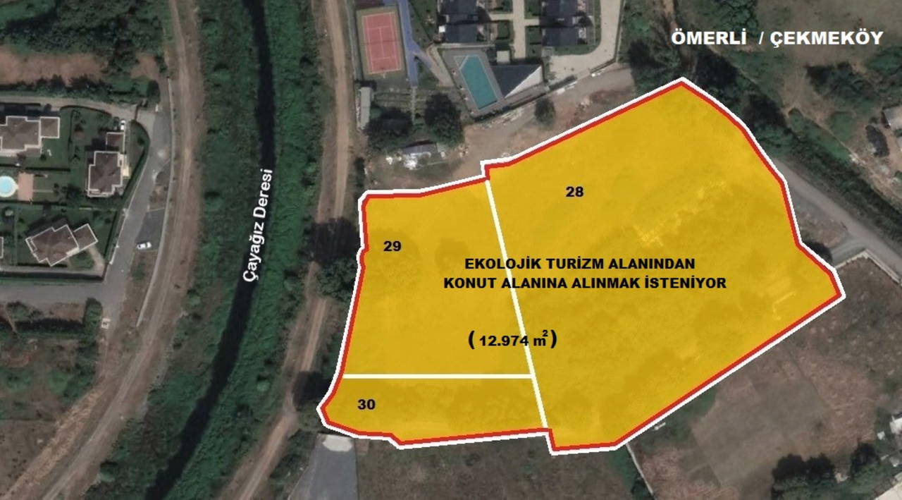 Çekmeköy Belediye Meclisi’nin ocak ayı meclis toplantıları başladı. Meclis gündemine alınan tekliflerden biri Çekmeköy Ömerli Mahallesi 7 ada, 28, 29 ve 30 parsellerin imar planlarının değiştirilmesiyle ilgili. Söz konusu teklifle, ekolojik turizm alanında bulunan, yaklaşık 13 bin metrekarelik arazinin konut alanına alınması isteniyor. Arazinin yakın çevresinde lüks villalar bulunuyor. Çekmeköy Belediye Meclisi, imar planı değişikliği teklifini, incelenmek ve rapora bağlanmak üzere komisyona havale etti.