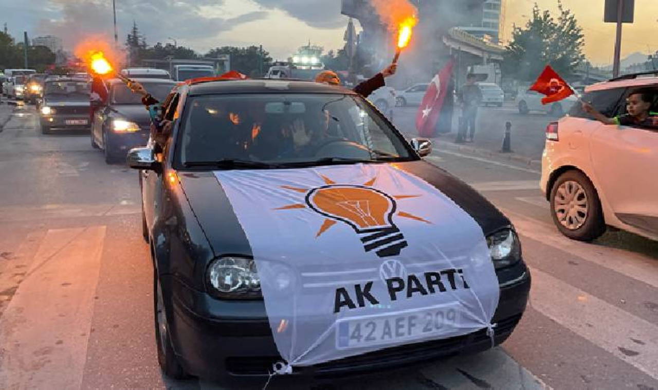 AKP İstanbul İl Başkanlığı önünde toplanan yurttaşlar da Türk bayrakları ve AKP flamalarıyla Cumhurbaşkanı Erdoğan lehine sloganlar atarak kutlamalara başladı.