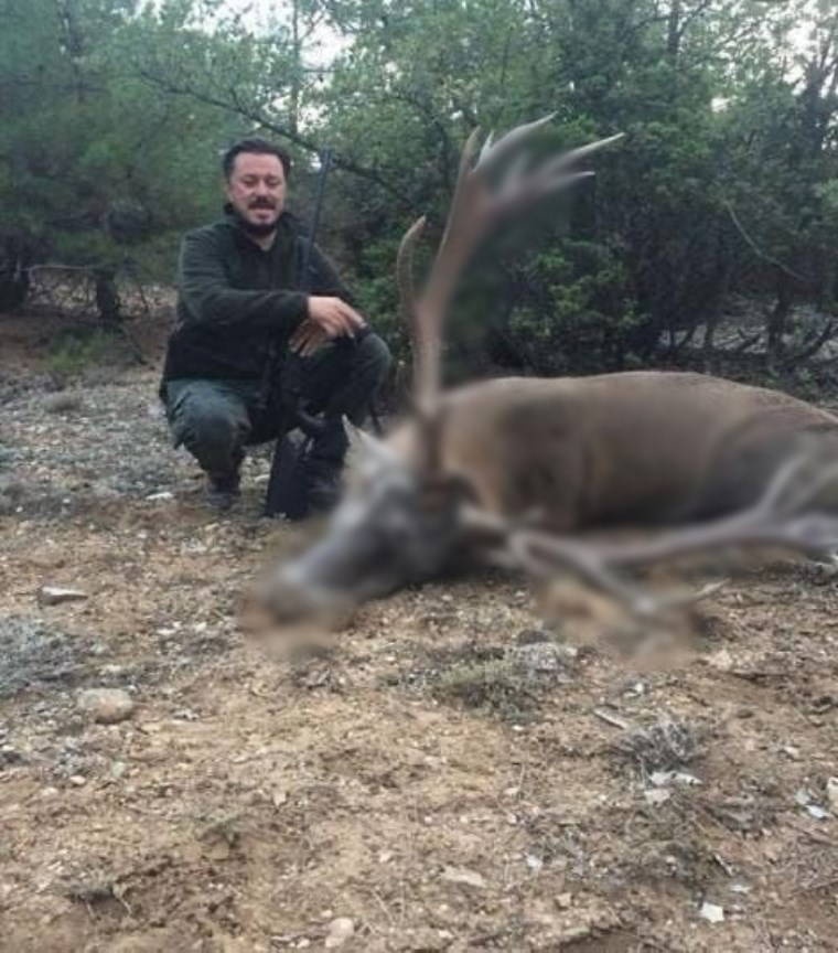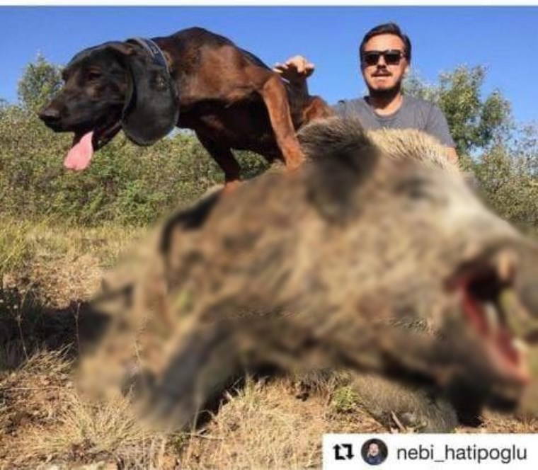 Bir ormanda ölü bir geyiğin ve ölü domuzun arkasında verdiği pozlarla gülümsediği görülen Hatipoğlu’nun parmak işaretiyle de ölü hayvanları işaret ettiği görüldü.