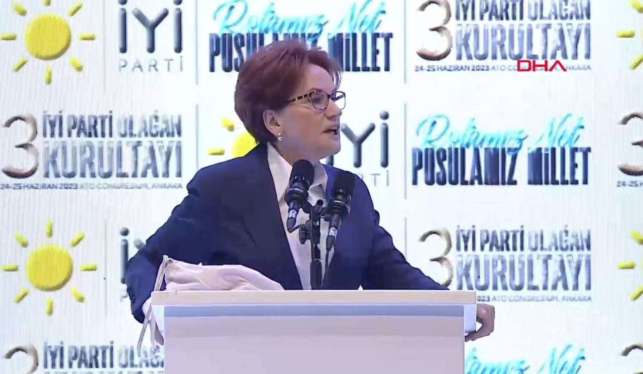 Akşener, yaptığı konuşmada İYİ Parti'den ayrılanlara ilişkin sert sözlerde bulundu.