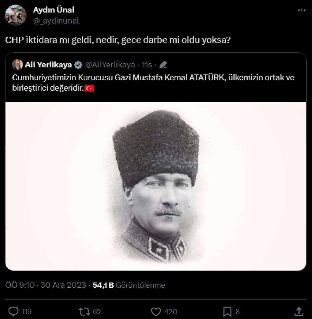 Ali Yerlikaya, skandalın ardından, kişisel sosyal medya hesabından Atatürk fotoğrafı