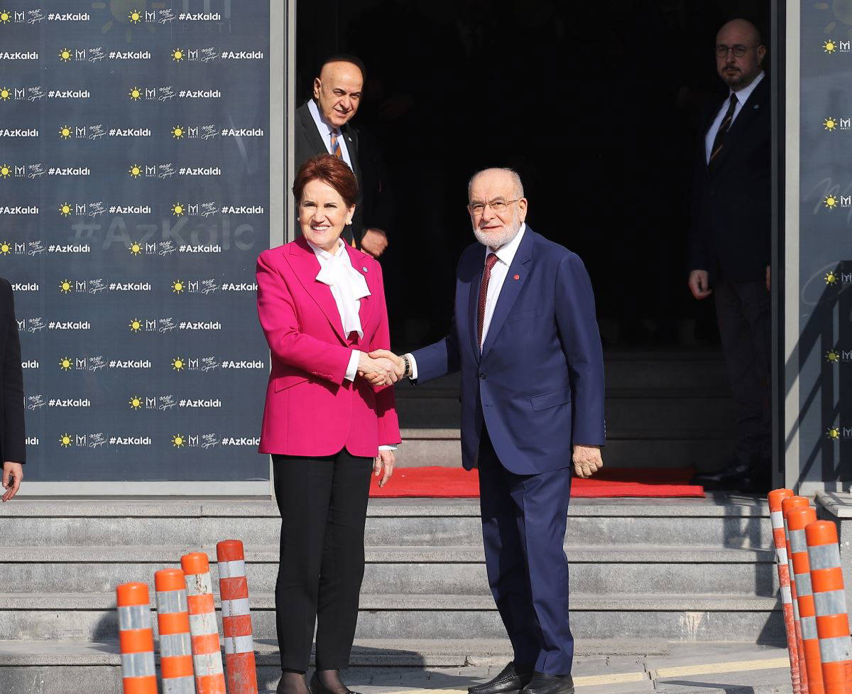 İYİ Parti Genel Başkanı Akşener, "Liderler Buluşması"na makam araçlarıyla ayrı ayrı gelen CHP Genel Başkanı Kemal Kılıçdaroğlu, DEVA Partisi Genel Başkanı Ali Babacan, Demokrat Parti Genel Başkanı Gültekin Uysal, Saadet Partisi Genel Başkanı Temel Karamollaoğlu ve Gelecek Partisi Genel Başkanı Ahmet Davutoğlu'nu parti genel merkezinin kapısında karşıladı.