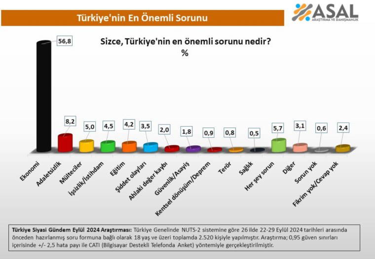 ASAL Araştırma, 22-29 Eylül tarihlerinde 26 ilde 2 bin 520 kişiyle yaptığı "Türkiye Siyasi Gündem" anketinin eylül ayı sonuçlarını açıkladı.