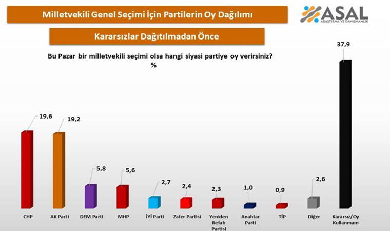 ASAL Araştırma'nın 26 ilde 2 bin kişi ile yaptığı genel seçim anketinin sonuçları kamuoyu ile paylaşıldı.