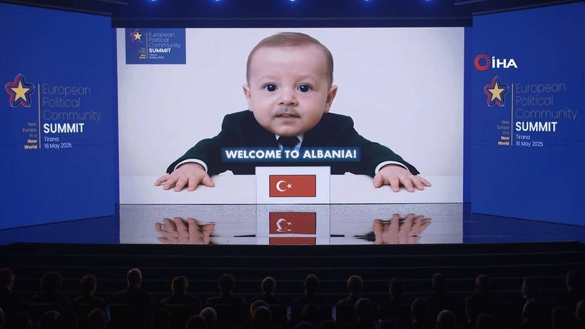 Avrupa Siyasi Topluluğu’nun 6. Zirvesi’nin açılışında zirveye katılan liderlerin yapay zeka ile çalışması sonucu bebeklik görüntüleriyle "Arnavutluk’a hoş geldiniz" demeleri dikkat çekti.