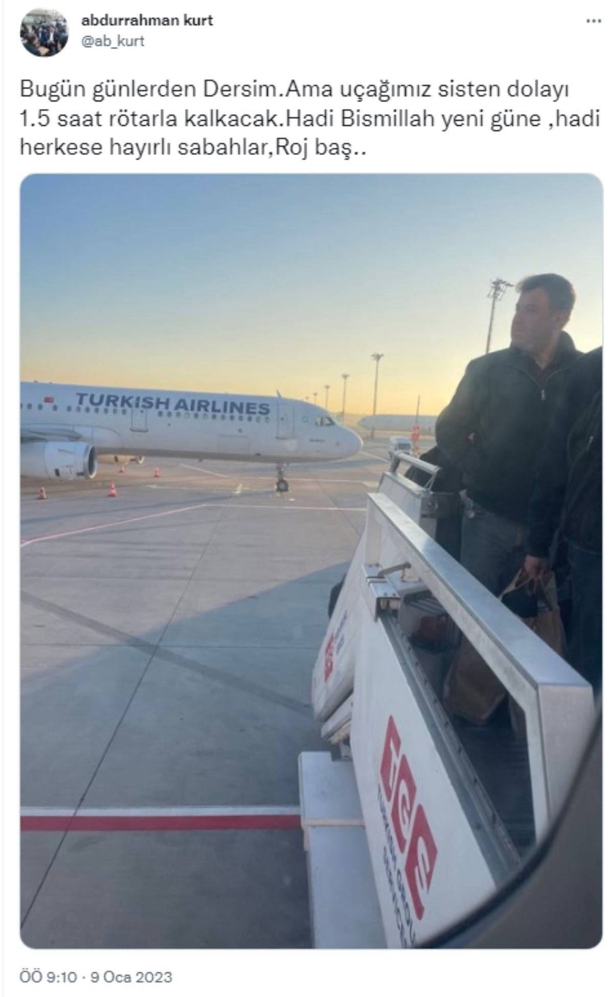 Kurt, uçağının rötar yapacağını belirttiği ve takipçilerine "hayırlı sabahlar" dileğinde bulunduğu paylaşımında "Bugün günlerden Dersim" diye yazdı.