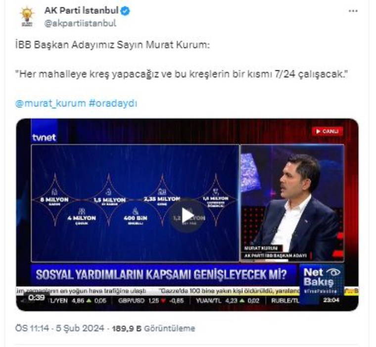 Kurum bu yıl yapılan yerel seçim öncesinde “Gece ve hafta sonu çalışan annelerimiz için müjdemizi veriyorum” diyerek şöyle açıklamıştı: “Her mahalleye çocuklarımız için kreş hizmeti götüreceğiz. Tüm gece emekçilerimiz için 7/24 nöbetçi kreş hizmeti veriyoruz” demişti.