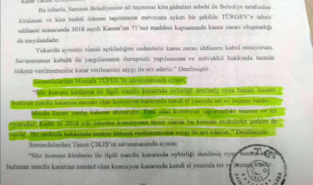 Sayıştay denetçileri 2019'da TÜGVA ve TÜRGEV'e yapılan kiralama nedeniyle kamunun 567 bin 251 TL, 2020 yılında ise 293 bin TL zarara uğratıldığı ortaya çıkardı. Sayıştay 8 Dairesi, 860 bin liralık kamu zararını meclis üyelerinden istedi. Sayıştay denetçileri, aralarında belediye başkanlarının da olduğu 2019'da 77 ve 2020'de 78 meclis üyesinden toplam 860 bin lira kamu zararının alınmasını talep etti. Bu kapsamında savunmalar alındı.