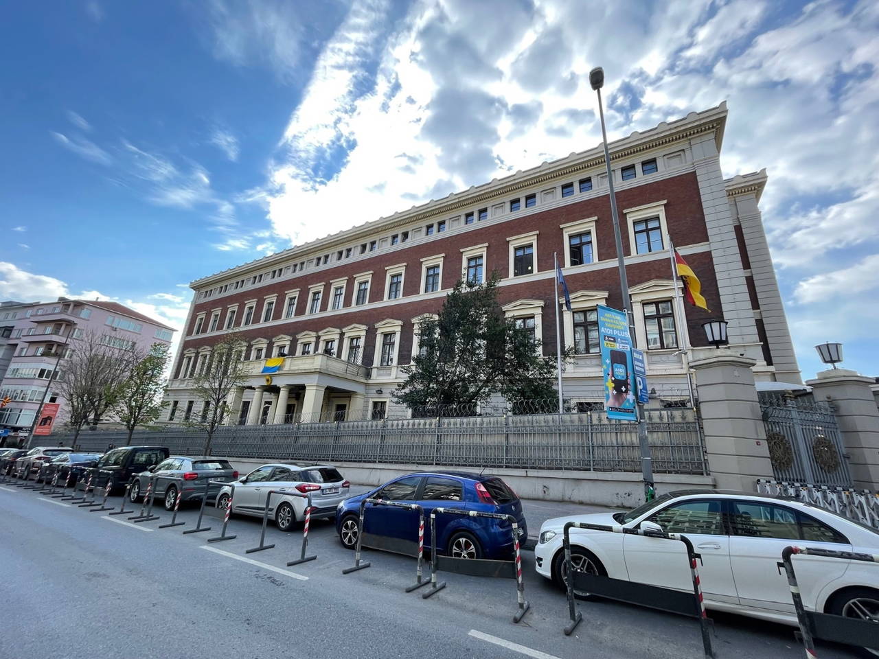 Beyoğlu Taksim’de bulunan Almanya Başkonsolosluğu binasına devam eden Rusya- Ukrayna savaşı çerçevesinde Kiev yönetimine destek olarak Ukrayna bayrağı asıldı.