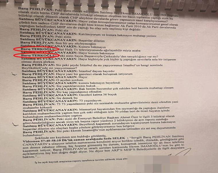 Dosyaya eklenen belgeler arasında, Savcı S. B. ve Barış Pehlivan arasındaki telefon konuşma kaydının çözümlemesinde Barış Pehlivan'dan bazı yerlerde Barış Terkoğlu olarak bahsedildiği görüldü.