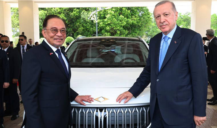 Erdoğan Malezya Başbakanı Enver İbrahim’e Türkiye’den kargoyla taşınan TOGG aracı teslim etti.