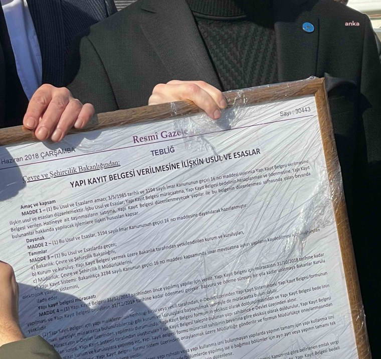 İYİ Parti’nin İstanbul Büyükşehir Belediye (İBB) Başkan Adayı Buğra Kavuncu, 6 Şubat Kahramanmaraş merkezli depremlerin yıl dönümünde, AKP İBB Başkan Adayı Murat Kurum’a AKP döneminde çıkarılan imar barışına ilişkin olarak Resmi Gazete’de yayımlanan Şehircilik Bakanlığı Tebliği’ni çerçeveletip gönderdi.
