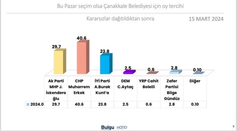 Son olarak Bulgu Kamuoyu Araştırma’nın Çanakkale’de yaptığı yerel seçim anketinin sonuçları paylaşıldı.