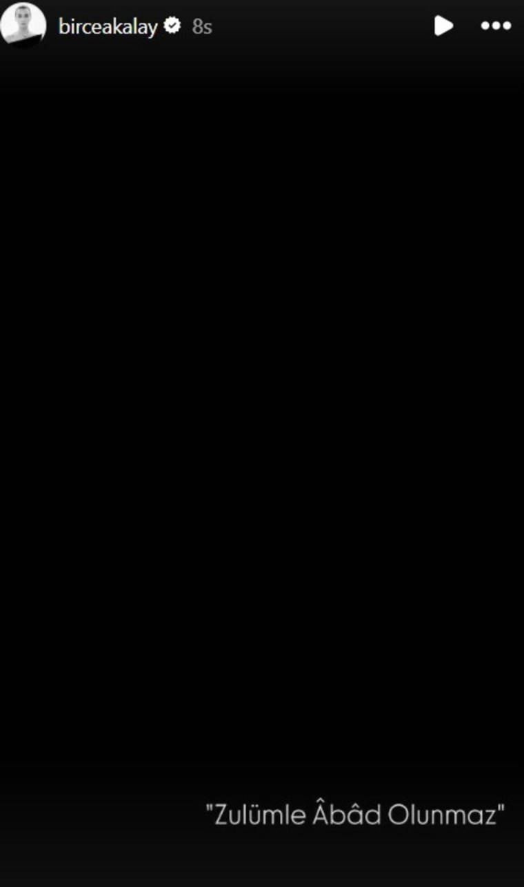 Ünlü oyuncu Birce Akalay'da Barım’ın tutuklanmasının ardından sayfasını karartıp “Zulümle abad olunmaz!” ifadelerini kullandı.