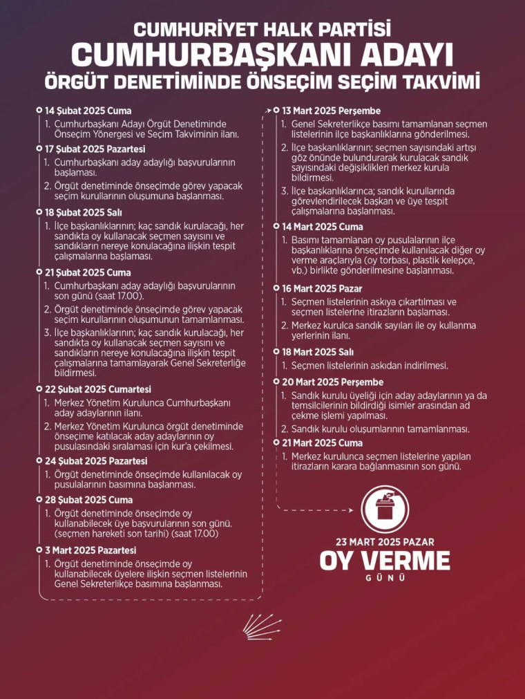 - 28 Şubat Cuma: Önseçimde oy kullanabilecek üye başvurularının son günü,