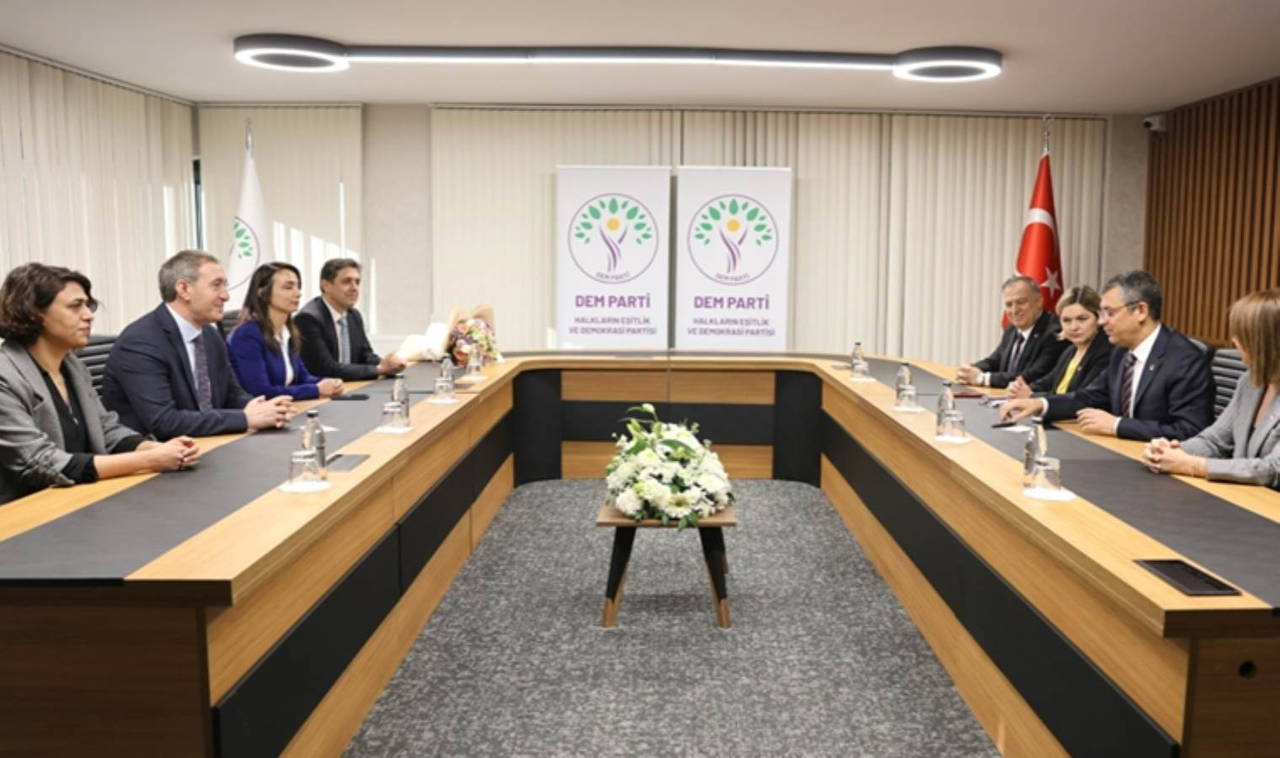 CHP Genel Başkanı Özgür Özel, Halkların Eşitlik ve Demokrasi Partisi (DEM Parti) Eş Genel Başkanları Tülay Hatimoğulları ve Tuncer Bakırhan ile görüşmek üzere DEM Parti Genel Merkezi’ne geldi. CHP Genel Başkan Yardımcıları Gül Çitfçi ve Gökhan Zeybek ile CHP Genel Sekreteri Selin Sayek Böke de Özel’e eşlik etti.