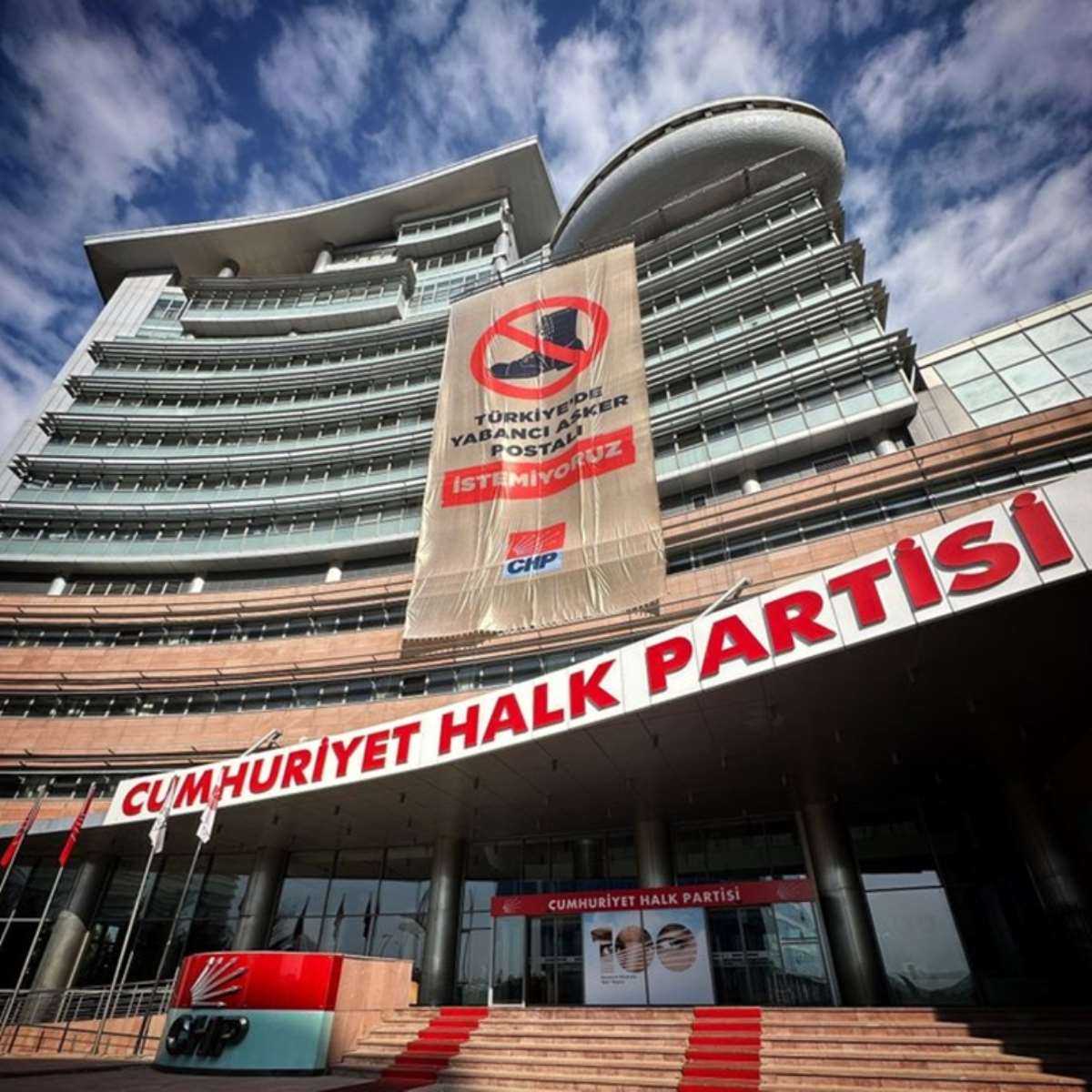 Genel merkez binasına asılan dev afişte "Türkiye'de yabancı asker postalı istemiyoruz" ifadelerinin yer aldığı görüldü.