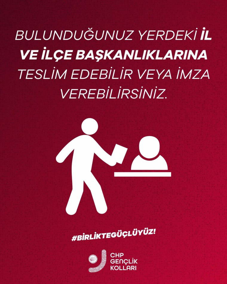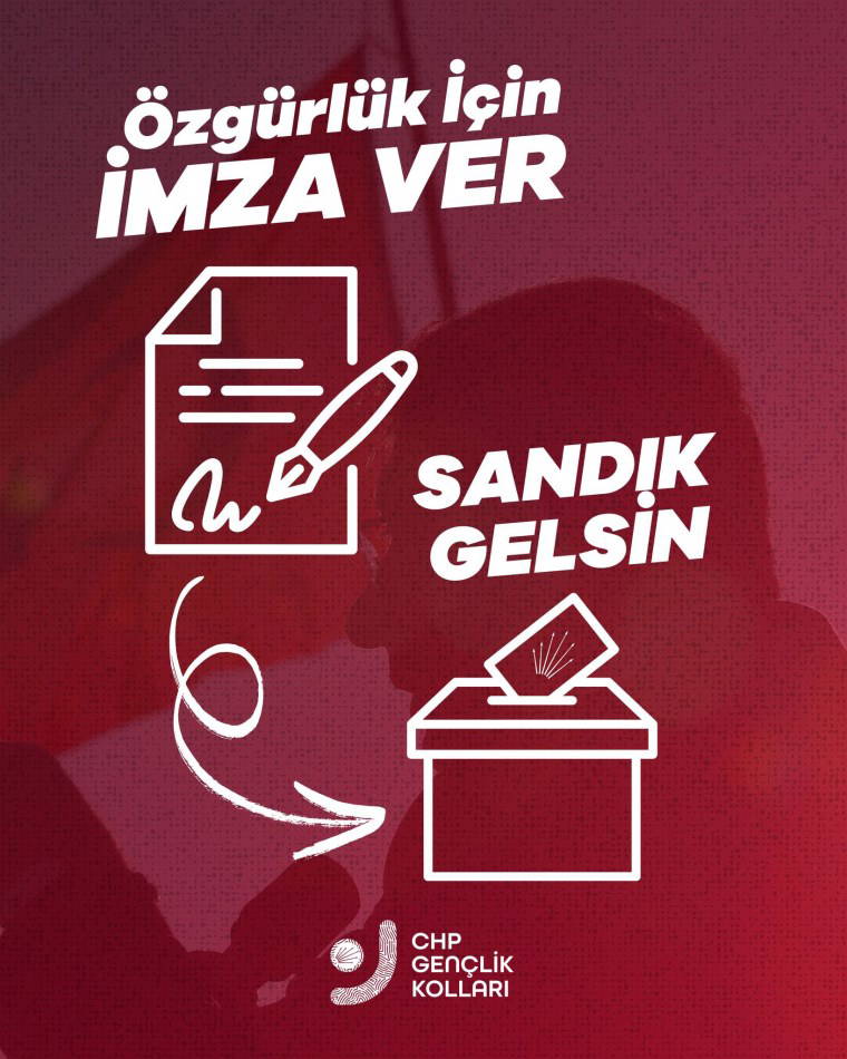 Açıklamada, "Değerli genç arkadaşım, Cumhurbaşkanı Adayımız Ekrem İmamoğlu'na özgürlük demek ve erken seçim sandığının kurulması için gerçekleştireceğimiz imza kampanyamızı başlatıyoruz.