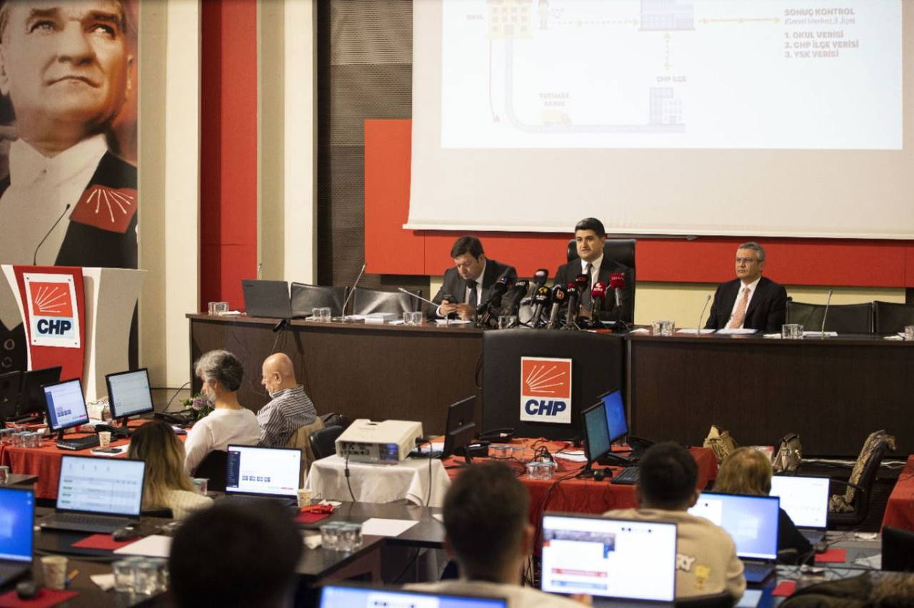CHP genel başkan yardımcıları Oğuz Kaan Salıcı, Onursal Adıgüzel ve Muharrem Erkek; 81 ilde oy kullanılacak okuldan bilginin işleneceği koordinasyon merkezini gazetecilere tanıttı.