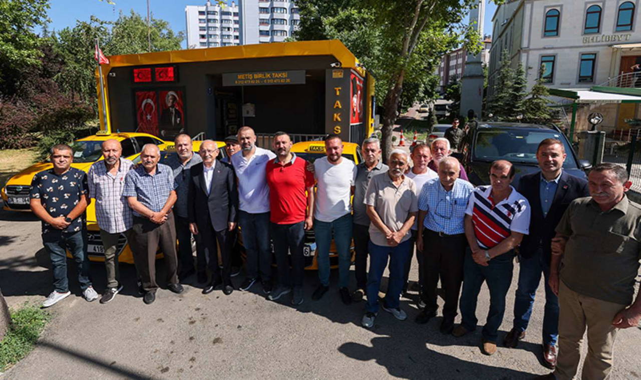 CHP Genel Başkanı Kemal Kılıçdaroğlu, beraberindeki heyetle Çankaya'daki Metiş Birlik taksi durağını ziyaret ederek taksicilerin sorunlarını dinledi.