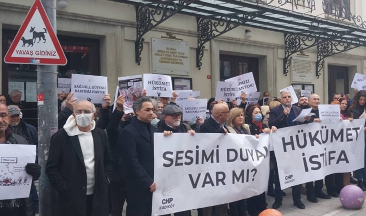 Süreyya Operası önünde ellerinde taşıdıkları "Hükümet istifa", "Sağlıklı, Güvenli Barınma Haktır", "Sesimi duyan var mı?" yazılı dövizlerle toplanan yurttaşlar, yaşanan baskı rejiminin dayanışma ile aşılacağını belirterek, “Hükümet istifa demenin suç sayıldığı günlerde biz Kadıköylüler, en gür sesimizle anayasal hakkımızı kullanacağız” dedi.