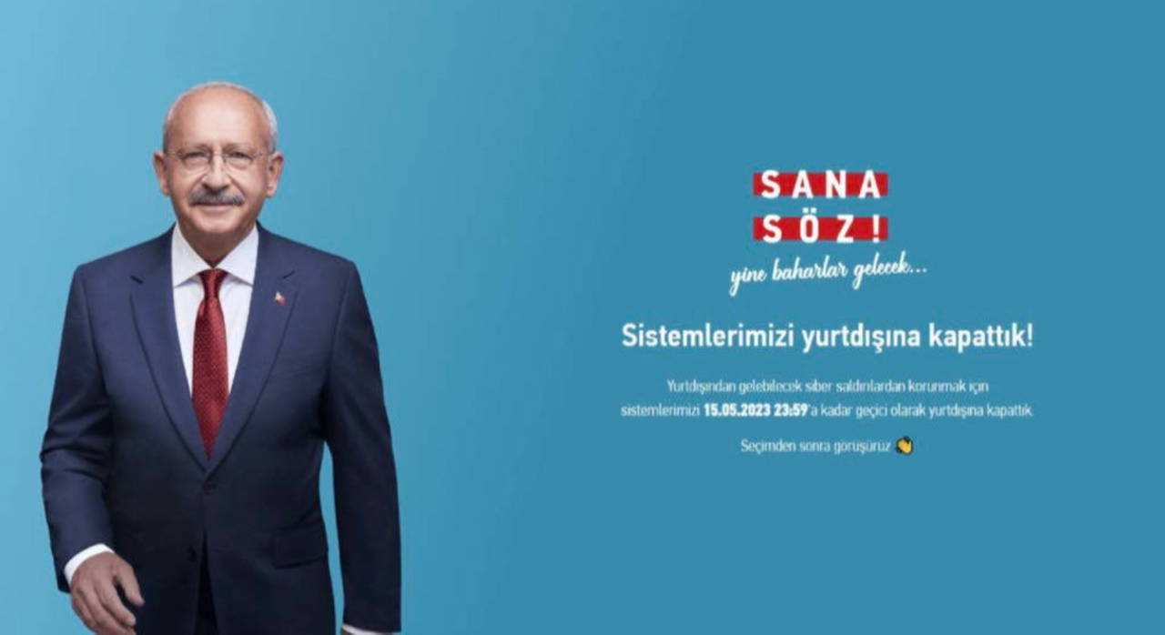 CHP, Millet İttifakı'nın cumhurbaşkanı adayı Kemal Kılıçdaroğlu'nun geçtiğimiz günlerde gündeme getirdiği siber saldırı ihtimaline karşı internet sitelerini yurtdışı erişimine kapattıklarını açıkladı.