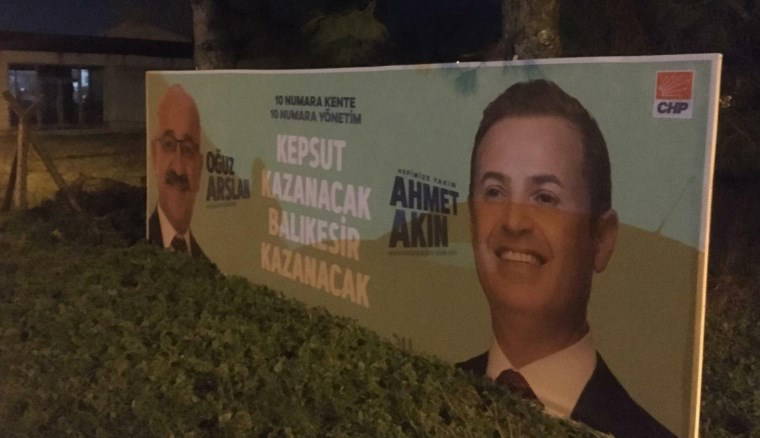 Daha önce seçim pankartları, AKP’li belediye tarafından kaldırılan CHP Balıkesir Büyükşehir Belediye Başkan Adayı Ahmet Akın’ın, Kepsut ilçesindeki açık hava reklamına da kesici aletle saldırı düzenlendiği iddia edildi.