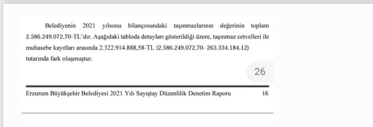 4-Bunların hepsi Sayıştay’ın 2021 raporlarında tek tek yazıyor. Erzurum belediye şirketlerinde sermaye aktarımı adı altında gayrimenkuller peşkeş çekiliyor. Bu gayrimenkullerin satılıp satılmadığı, değerine göre işlem yapılıp yapılmadığı belli değil.