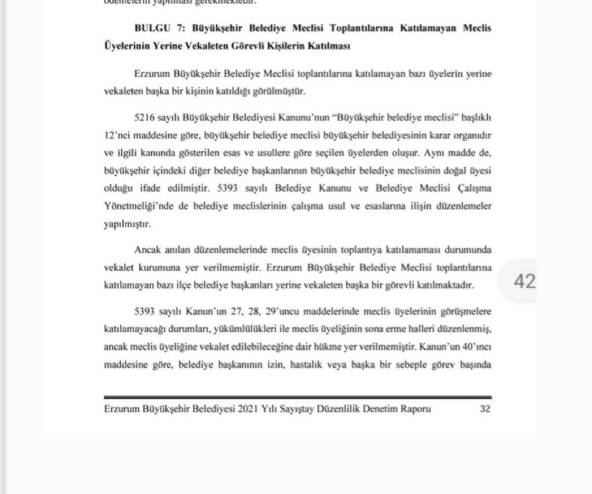 10-Erzurum’da belediye meclis toplantılarına bir meclis üyesinin yerine başkaları katılıyor. Oysa ki meclis üyelerinin yerine kimse katılamaz. Kanunda da yeri yok. Yapılan apaçık bir suç; ama Erzurum Belediyesi’nde hukuk işlemiyor.