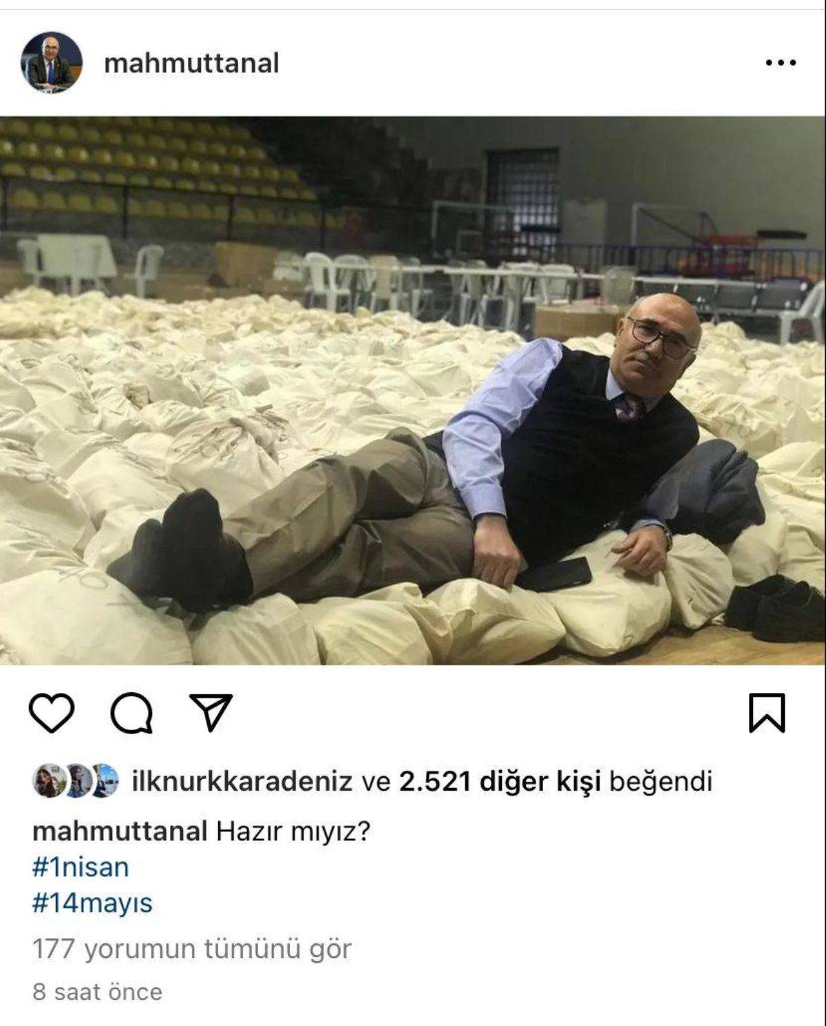 2019 seçimlerinde olası bir hilenin önlenmesi için seçim kuruluna getirilen oy pusulalarının bulunduğu çuvalların üzerine uzanarak poz veren ve günlerce manşetlerden inmeyen pozu ile dikkatleri üzerine çeken CHP İstanbul Milletvekili Mahmut Tanal, aynı pozu sosyal medya hesaplarından paylaştı.