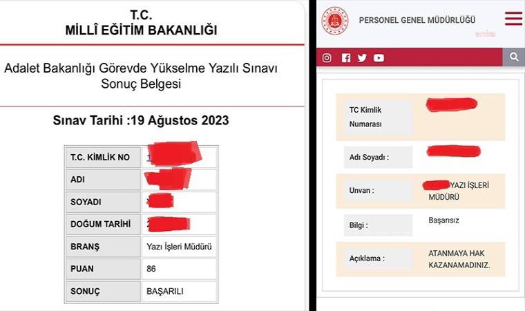 Öztürkmen’in paylaştığı belgelere göre; örneğin idari işler müdürlüğü poziyonu için yazılı sınavdan 91 puan alan kişilerin mülakatta “başarısız” olduğu görüldü. Yine belgelere göre, ilinde 1'inci olan adayın dahi mülakatta verilen düşük puanla “başarısız” sayıldığı, başka bir ilde yazılı sınavda ilk 3 sırada olan adaylardan hiçbirinin de mülakatta kazanamadığı ortaya çıktı.