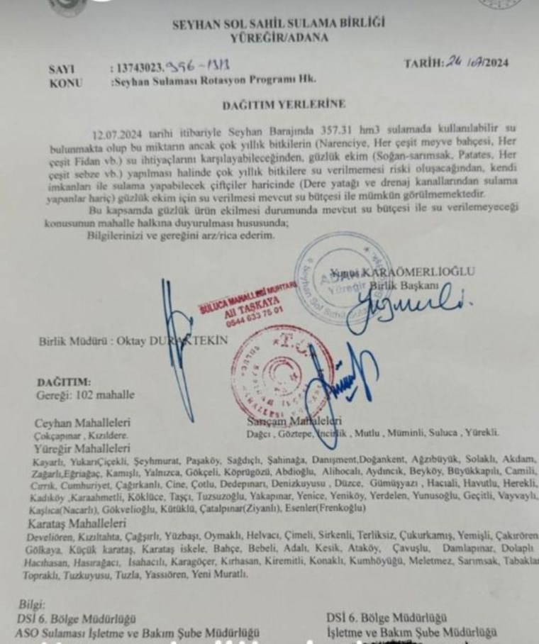 İşte sulama birliklerinden çiftçilere gönderilen 'ürün ekmeyin' uyarısı: