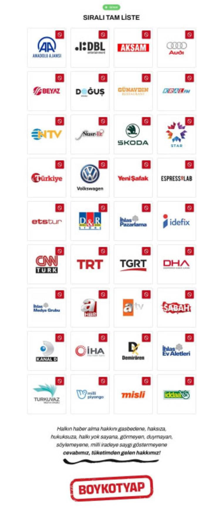 CHP Genel Başkanı Özgür Özel, 24 Mart’ta yaptığı açıklamada, tüketici gücünü kullanarak boykot başlattıklarını duyurmuştu. Saraçhane mitinglerini görmezden gelen medya kuruluşları ve bağlantılı şirketlerin öncelikli olacağını belirten Özel, boykot listesini ilan etmişti.