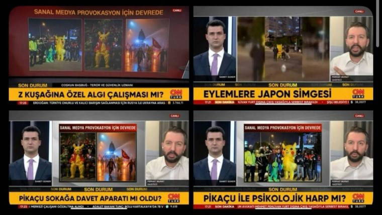 O anlarda CNN Türk'ün KJ'sinde "Z kuşağına özel algı çalışması mı?", "Eylemlere Japon simgesi", "Pikaçu sokağa davet aparatı mı oldu?" ve "Pikaçu ile psikolojik harp mi" şeklinde sorular yer aldı.