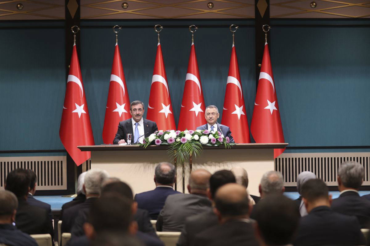 Fuat Oktay, "Cumhuriyetimizin 100'üncü yılında Türkiye'nin kaderini etkileyecek bir seçim gerçekleştirdik. Hem Meclis'te hem Cumhurbaşkanlığı'nda açık farkla milletimizin teveccühüne nail olduk. Milletimiz kararını istikrardan yana kullandı. Artık önümüzde yeni bir süreç var. Şerefle yürüttüğüm Cumhurbaşkanı Yardımcılığı görevini dostun Cevdet Yılmaz kardeşime devrediyorum" dedi.