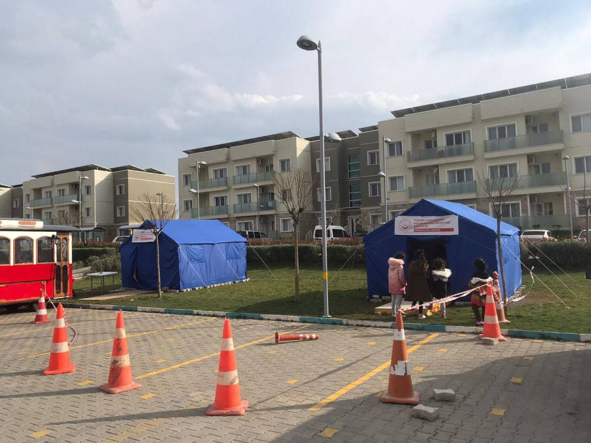 Devasa bir site, içerisinde de AVM bulunuyor. Evler depremden zarar görmemiş. İçeride 2 AFAD çadırı ve 1 Kızılay çadırı da mevcut. Çadırlardan birisinin üzerinde Menzil Mahalle Muhtarlığı Depremzede Yardım Dağıtımı yazılı bir pankart da bulunuyordu. Kamu görevlilerinden ziyade yine cemaat görevlileri...