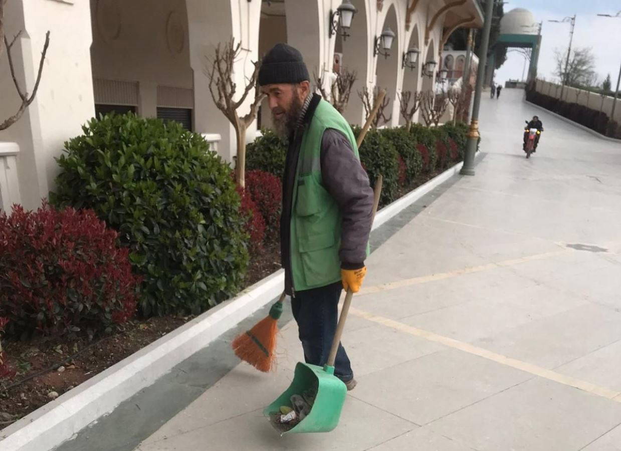 Türbenin bulunduğu büyük alana girdiğimizde burada marketlerin, lokantaların hatta telefoncuların olduğunu gördük. Turkuvaz yelekler giymiş arkasında görevli yazan insanlar da vardı. Yapılar depremden zarar görmemiş. Ancak tadilatta olan yerler vardı. Bir tadilatta işçilerin yanına yanaşıp ne yaptıklarını sordum. Pastane yapılacakmış.