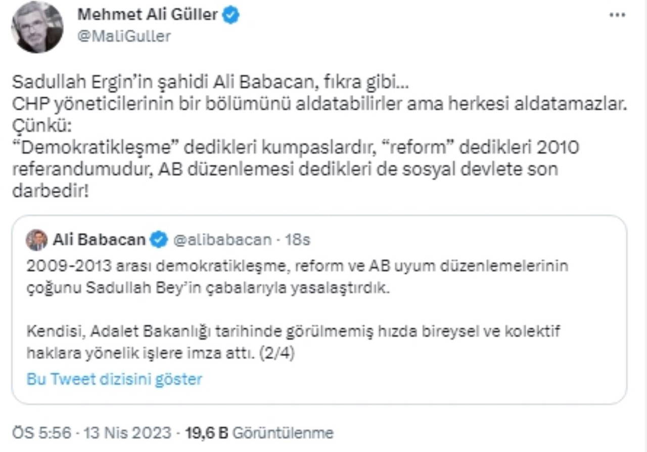 Mehmet Ali Güller de Babacan'a tepkisini şu sözlerle dile getirdi: