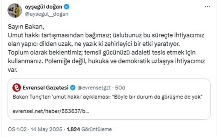 Umut hakkı tartışmasından bağımsız; üslubunuz bu süreçte ihtiyacımız olan yapıcı dilden uzak, ne yazık ki zehirleyici bir etki yaratıyor.