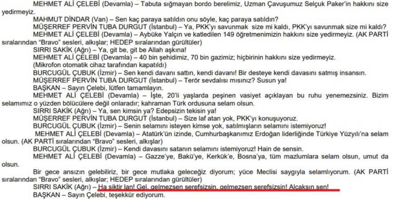 Sakık’ın ceza almasına neden olan söz konusu sözleri AKP İzmir Milletvekili Mehmet Ali Çelebi ile yaşadığı tartışma sırasında söylediği öğrenildi.