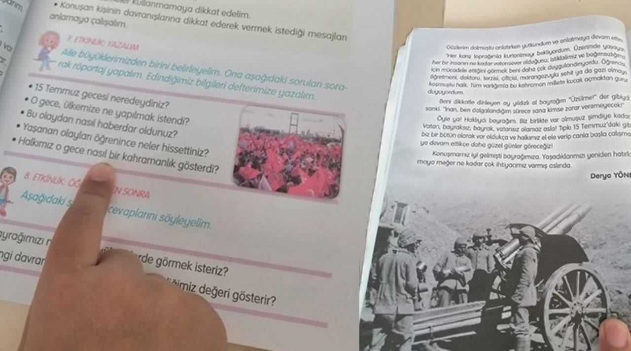 Millî Eğitim Bakanlığı’nın ilkokul 3. sınıflar için hazırlayıp okullarda ücretsiz olarak dağıttığı ders kitabında öğrenci velilerine yönelik '15 Temmuz darbe girişimi' konulu sorular tepkiye neden oldu.